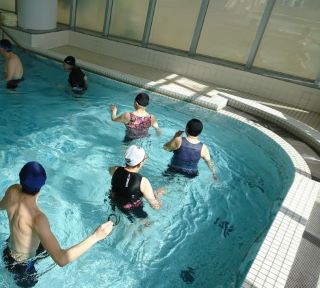 生活習慣病患者さんは、グループトレーニングで水中運動(アクアビクス・アクアウォーキング)を行います。