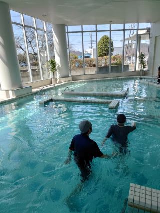 呼吸器や脳血管疾患の方でも、医師とPTで評価して水中での運動を行うことがあります。 |